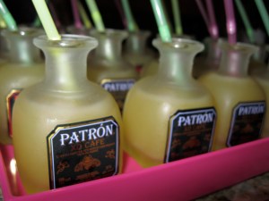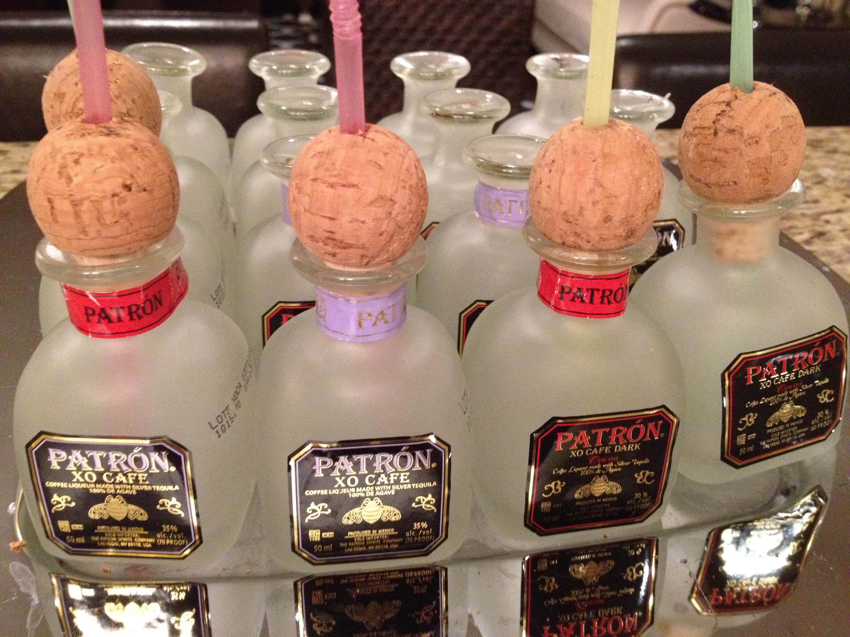 In the midst of the big weekend, we threw a Birthday Bash at my condo. And like true DIVAs, no detail was overlooked. I happen to be a sucker for miniature items. So when I came across an image of Peter Callahan‘s Mini Patron Bottle Margaritas, I knew I had to have them at my party. The original plan was to drill holes through the cork tops, and push straws through the cork. Now this requires a power tool. Me and tools…. well, look at the photo below to see how we pair up, ha.