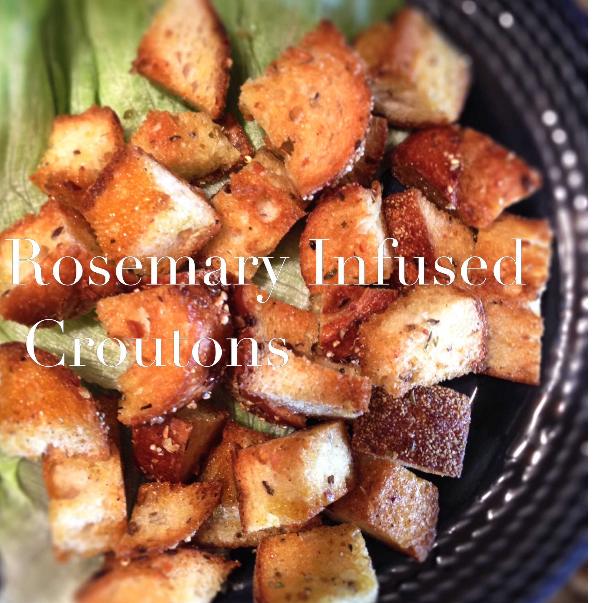 What do you do when you buy too much bread? You make croutons! The key is to use bread that is slightly stale, and make sure they’re well covered in oil, but not drenched. These particular croutons are unique though because they’re baked in extra virgin olive oil that has been infused with rosemary. The richness adds such a depth to the croutons flavors. The idea is to enhance the salad with croutons though, so I mix it with regular olive oil as to not overpower the flavors of the salad’s dressing.