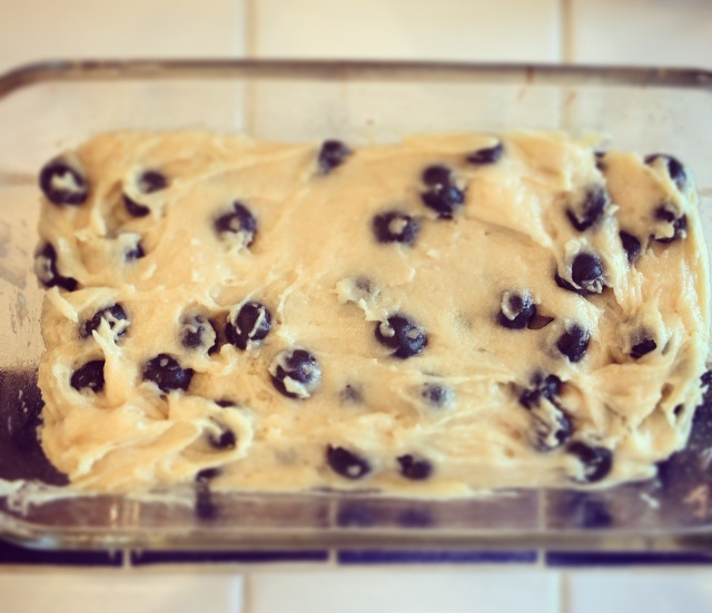 Whisk together flour, sugar, baking powder, and salt in a bowl, then add milk mixture and stir until just combined. Fold in blueberries gently but thoroughly.