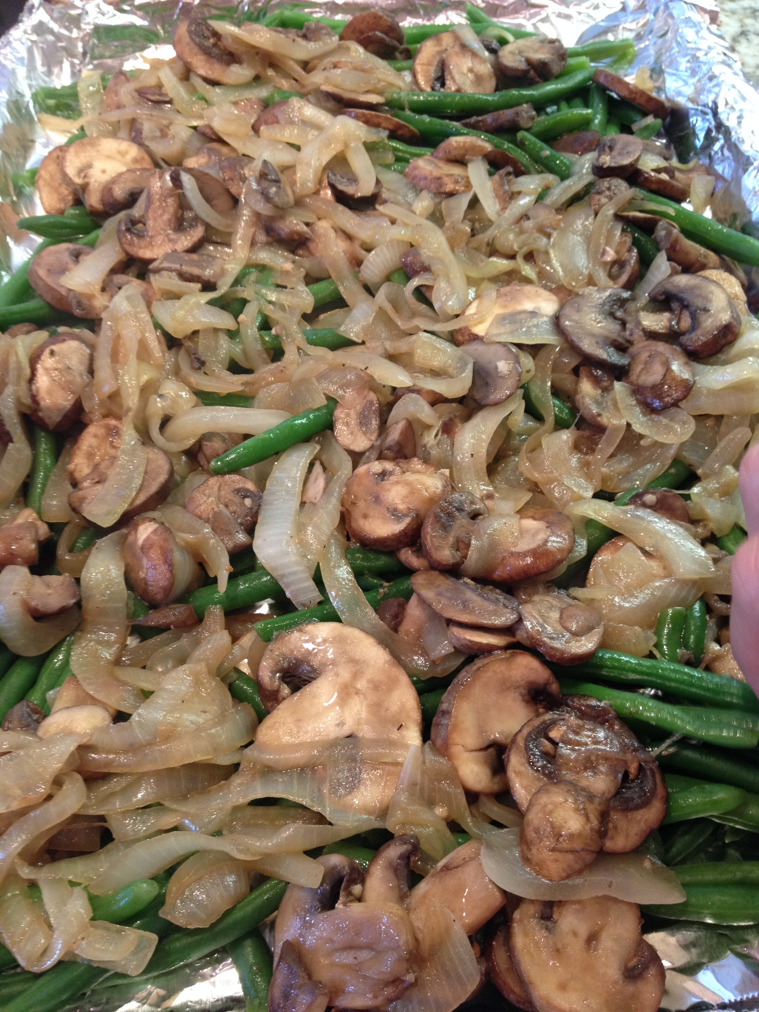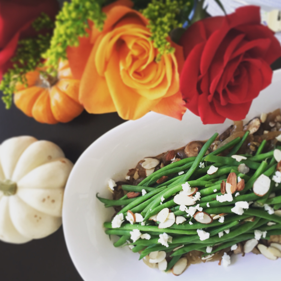 I personally have never been a fan of Classic Green Bean Casserole. I know for some people it’s just a staple and you can’t live without it. For the rest of us, there’s a healthier, fresher option now. Taking the traditional ingredients of green beans, mushrooms, onions, and a crunchy top, I’ve made a new go-to for our family’s Thanksgiving. Fresh green beans, Portobello mushrooms, balsamic caramelized onions, crispy almonds and creamy goat cheese. We’ve been serving it for years now. And other bonuses about this dish are it can be made in advance, it travels well, and it’s just as good at room/warm temperature as it is hot. Boom! Thanksgiving for today’s on-the-go family.