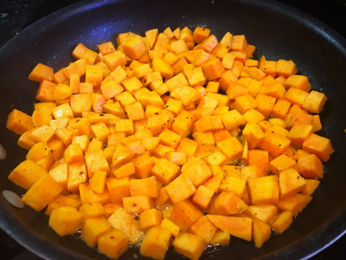 Preheat the oven to 425 degrees. Peel the sweet potatoes and then chop into small cubed pieces. In a large sauté pan, melt the butter over low to medium heat. Add the sweet potatoes and let them softy sauté for about 10 minutes. Add salt & pepper. You want them to simmer but not caramelize. Once they start to cook through a bit (their color will start to change), place them in a buttered glass pyrex. Be sure to only have one layer of potatoes. Cover with tinfoil and bake for 20-30 minutes, or until they’re tender. Drizzle with a small amount of honey & mix carefully. Remove from the oven and let cool slightly – this allows the edges to harden a bit while keeping the center soft. Just before serving, place back in the oven for another 5 minutes. Serve hot.