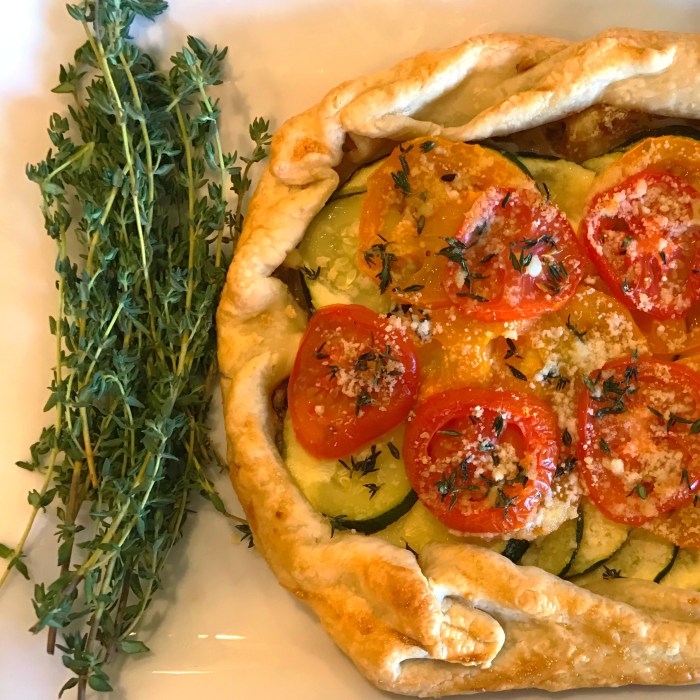 While I do often serve this as an appetizer, it is also a delicious lunch. Think of it as a rustic summer vegetable pie. Serve along with a fresh, simple green salad.