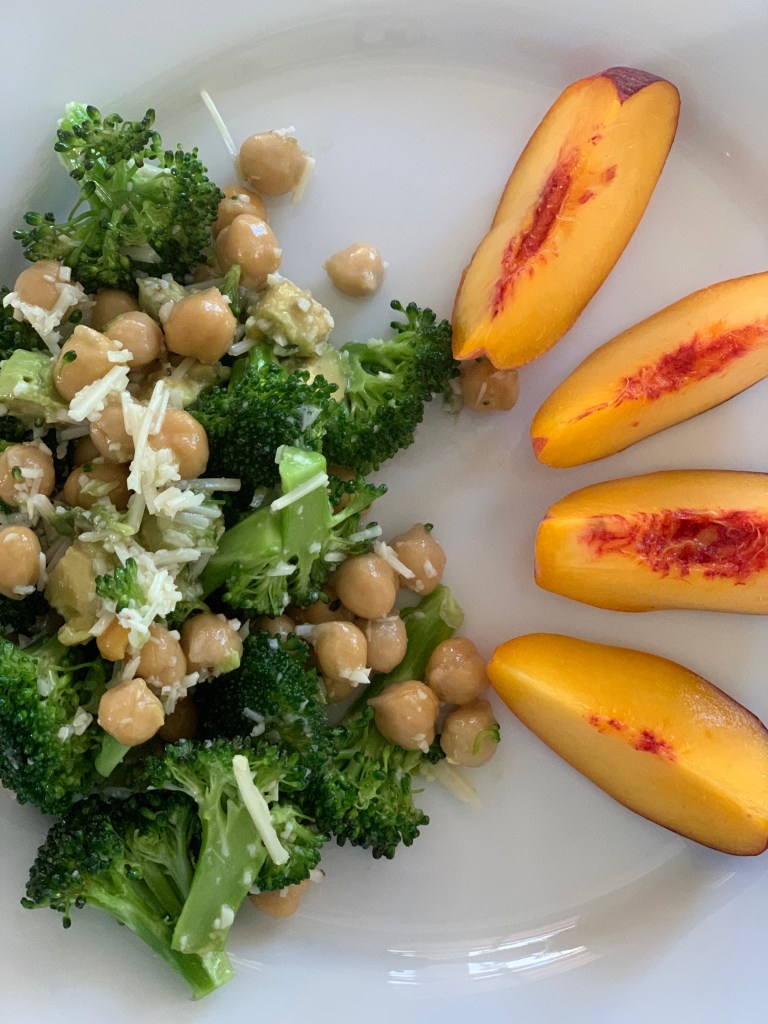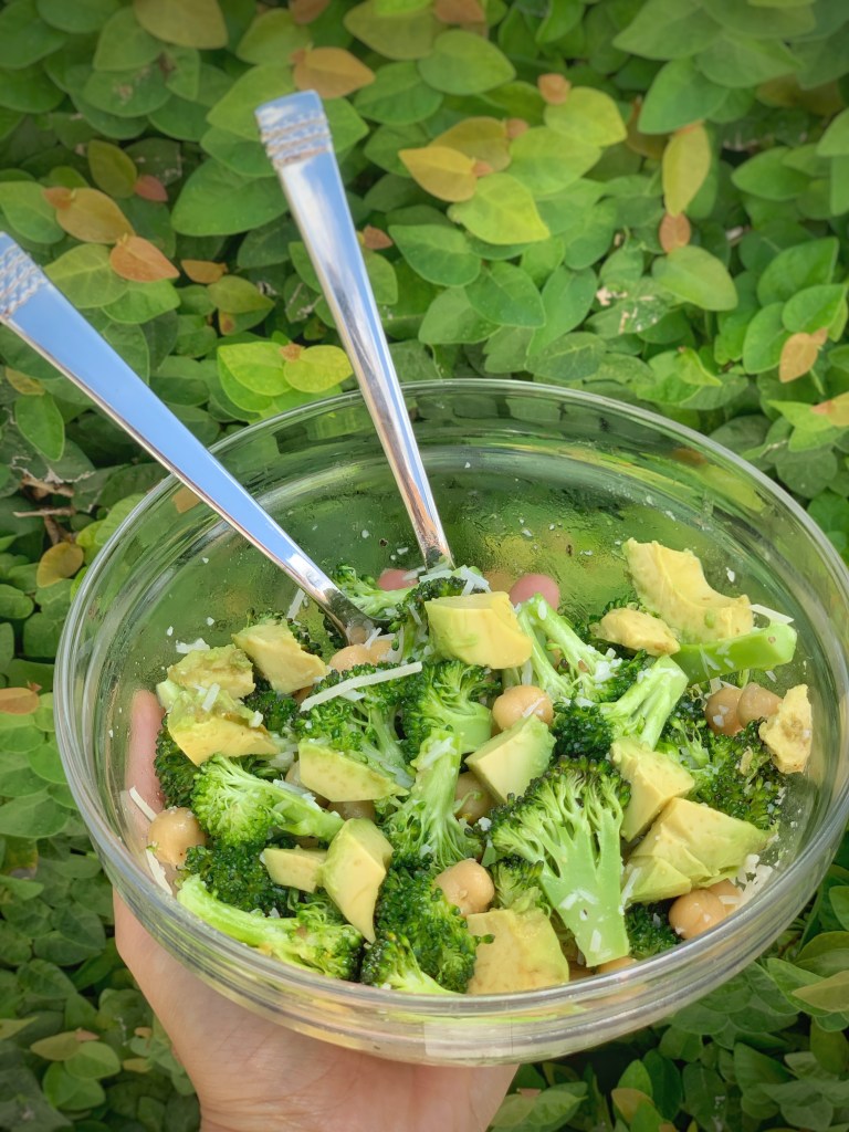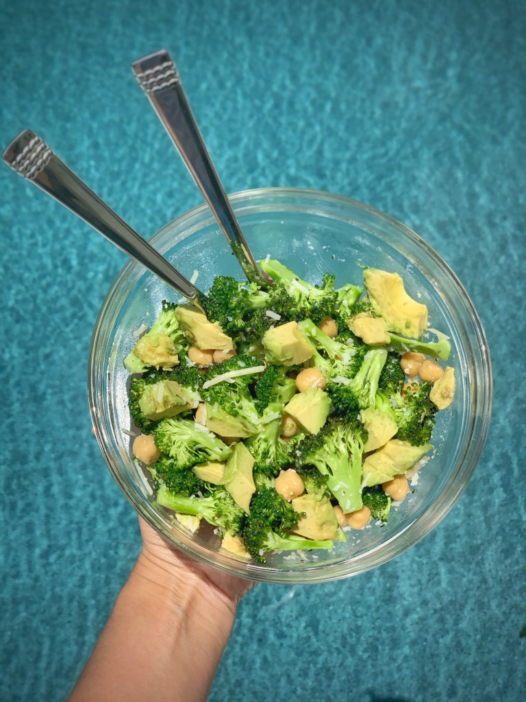 Broccoli, avocado, chickpeas, parmesan cheese… this absolutely delicious salad has become my favorite go-to lunch. The prep is super easy and it is packed with so many delicious nutrients. Raw broccoli is high in vitamin C, dietary fiber, and is known to have anti-cancer benefits. Chickpeas are a rich source of vitamins, minerals and fiber, and are loaded with health benefits, such as improving digestion, aiding weight management and reducing the risk of several diseases. Additionally, chickpeas are high in protein, making them an excellent replacement for meat in vegetarian and vegan diets. Avocados contain several B vitamins, vitamin K, C, E and potassium. They have also been shown to lower blood cholesterol levels. Even parmesan cheese is good for you in moderation as it is a good source of protein & fat, is rich in vitamins and minerals like calcium, vitamin A, vitamins B6 and B12, phosphorus, zinc, and copper.
