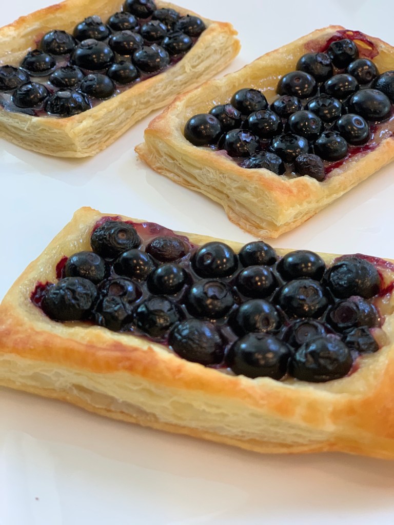 One downside of not dining out during a pandemic is no gourmet brunch. You know, the ones where you order the most amazing main dish, but then it comes with not only bottomless mimosas, but a basket of homemade pastries. I usually don’t crave these sweet treats, but when you haven’t had one in over six months, you need to take matters into your own hands and learn how to make them. Provided I’m not a morning person though, I needed to figure out a shortcut so that we were actually enjoying these breakfast pastries before dinner. Lucky for all of us, Frozen Puff Pastry is absolutely delicious and easy to work with. The combination of the fresh blueberries with the lemon curd is ammmaaazing. No extra sugar is needed in this dish as there is enough sweetness in the curd. You can always make your own lemon curd, but I opted to go with a jar from Trader Joe’s. So easy and beyond delicious. Just be sure to make extras as no one can just eat one!
