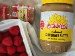 Being a peanut-free home, we keep a collection of different nut butters. Almond is our go-to but we do shake it up with others. Our latest discovery is Sunflower Butter, which is super tasty! The brand we found, SunButter, highlights that is is free of the top 8 food allergens – peanuts, tree nuts, soy, milk, eggs, wheat, shellfish, & fish.