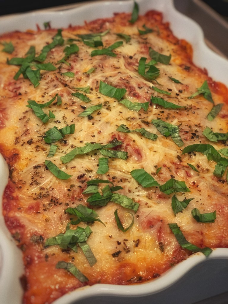 Bake the dish for 20-25 minutes, or until the sides start to bubble. When done cooking, sprinkle with the fresh chopped basil.