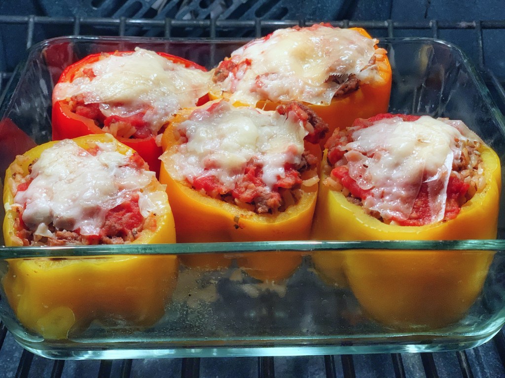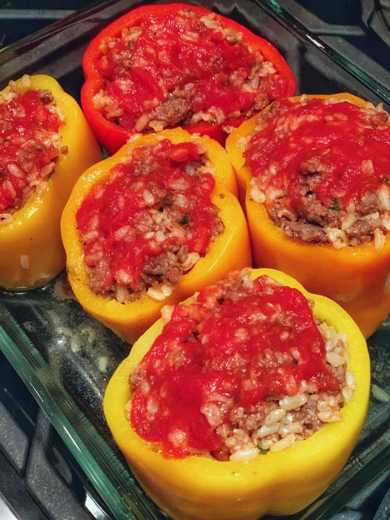 This dish is one that stays on rotation in our home. It’s easy, flavorful, can be made in advance and makes for great leftovers. Historically, I have only added the cheese on the top of the peppers. As of late though, I have found myself adding cheese with each bite (calcium craving?!). Next time I plan to add cheese into the stuffing, as well as on top. If you go this route, please let me know how it turns out!