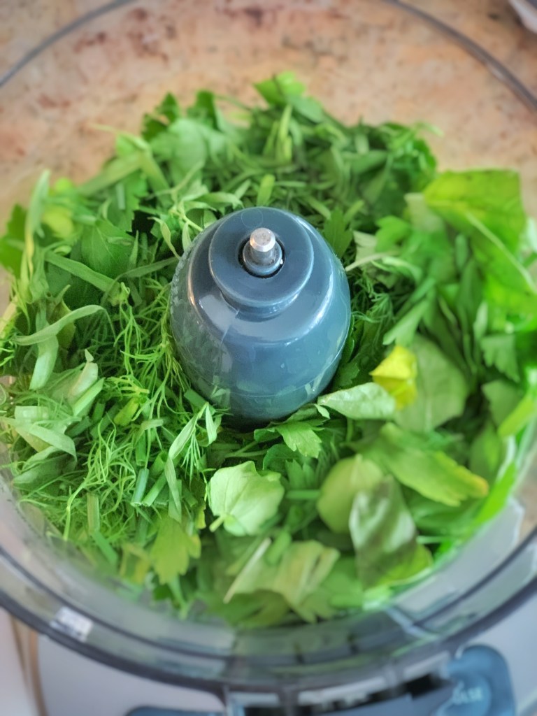 - 1 cup mixed soft leafy Herbs, such as dill, basil, mint, watercresss leaves