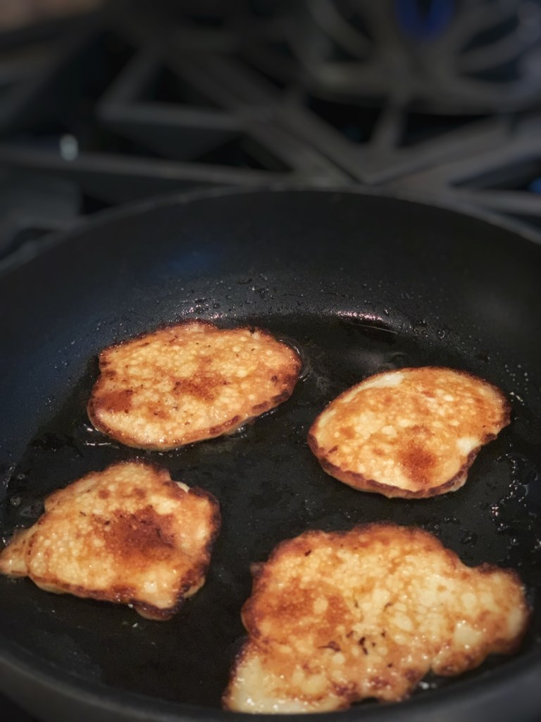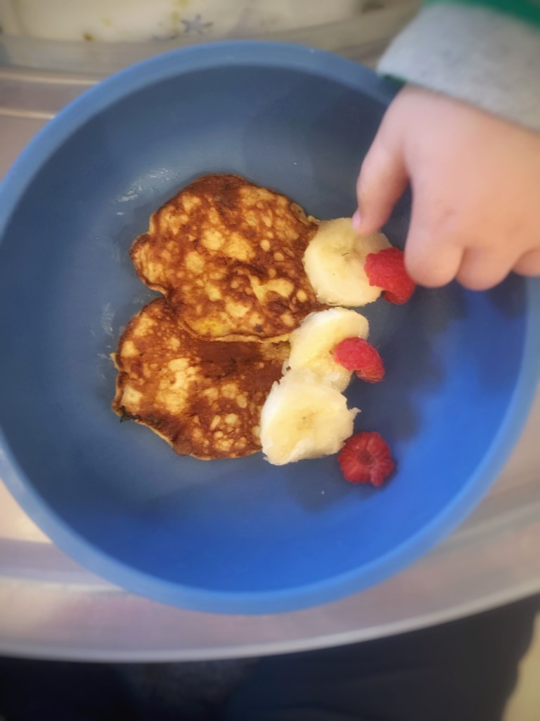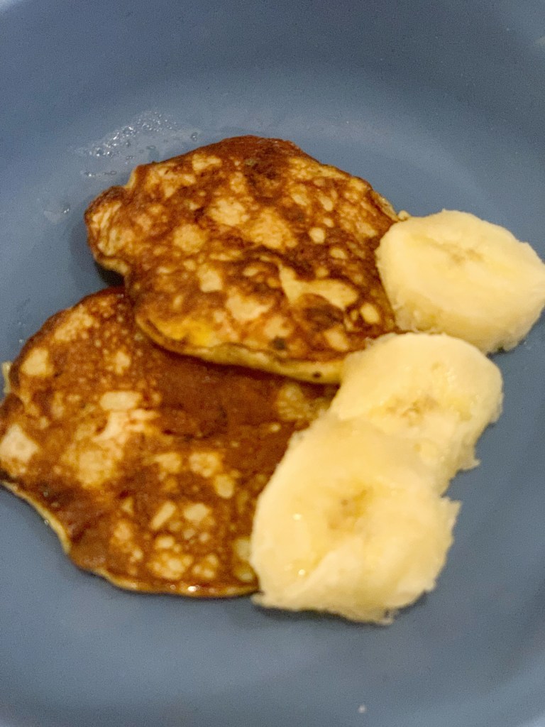 Now that I have a toddler in the house, we are adding new recipes to our collection. These banana pancakes are one of our little guys favorites. They’re easy to make, reheat easily, and they are a great, soft food for beginner eaters. Adult approved as well!