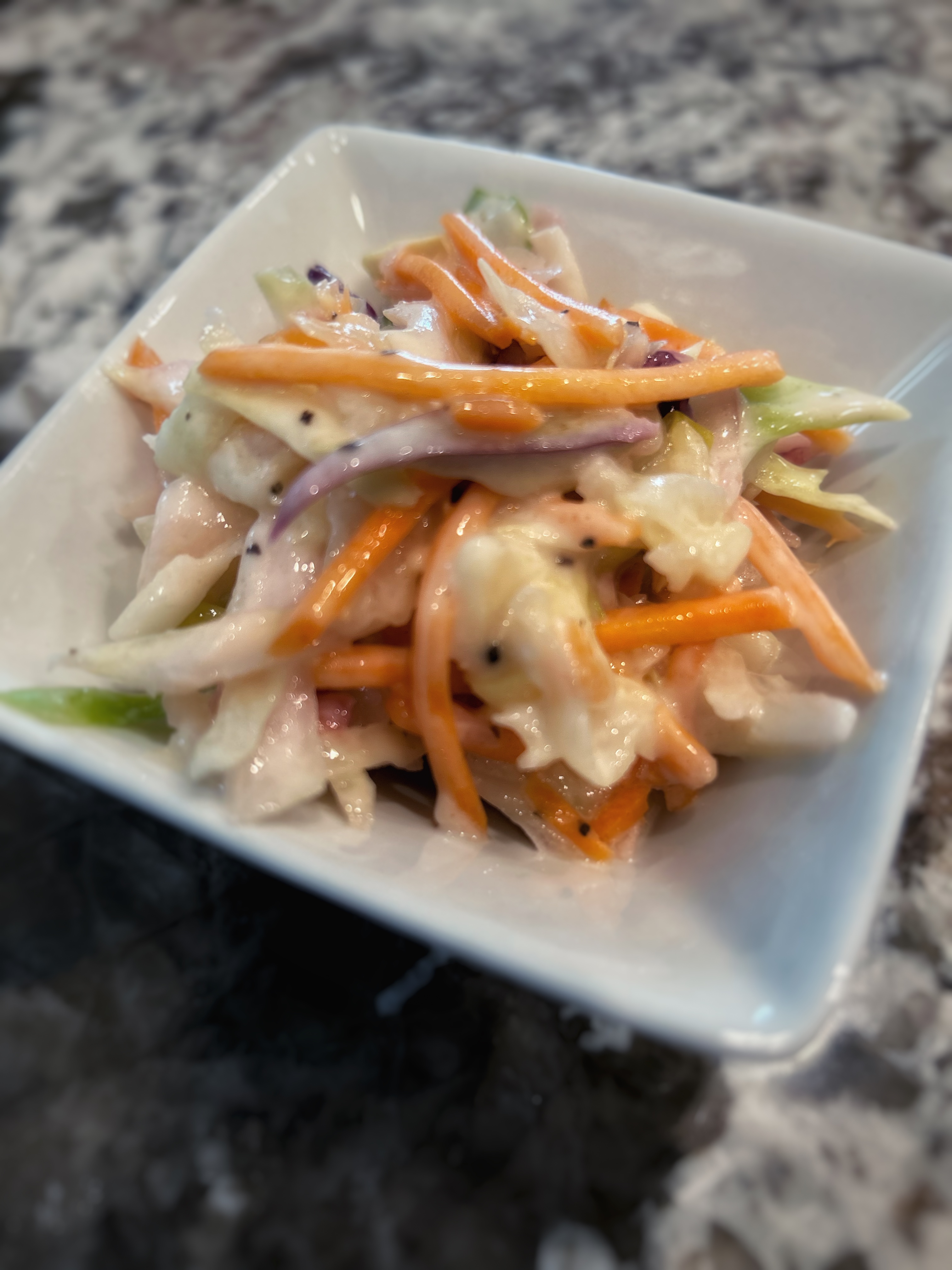 Place a large skillet over medium to high heat. Add a small amount of oil. Place one flour tortilla in the skillet, topped with shredded cheese, pulled pork and coleslaw. Top with a second flour tortilla. Flip over when the bottom tortilla starts to slightly brown. Cook for another couple minutes until the second tortilla is slightly browned. It will be quicker than the first side. Serve hot with extra coleslaw.
