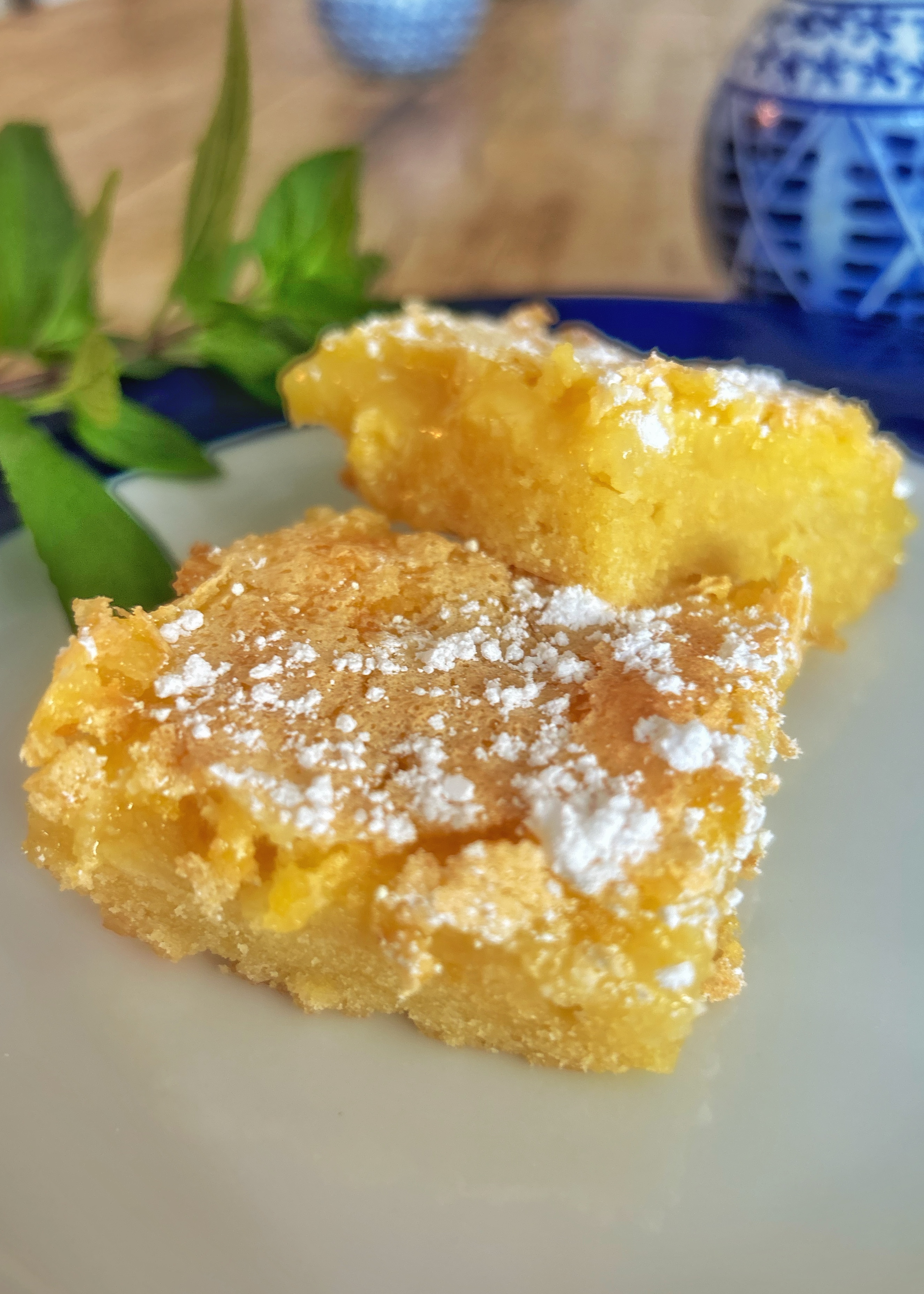 I had the pleasure of enjoying these lemon bars before I attempted to bake them. Friends of my father-in-law made them for our family a few summers back and we’ve been making them ever since. They’re the perfect balance of creamy butter and sour lemon.
