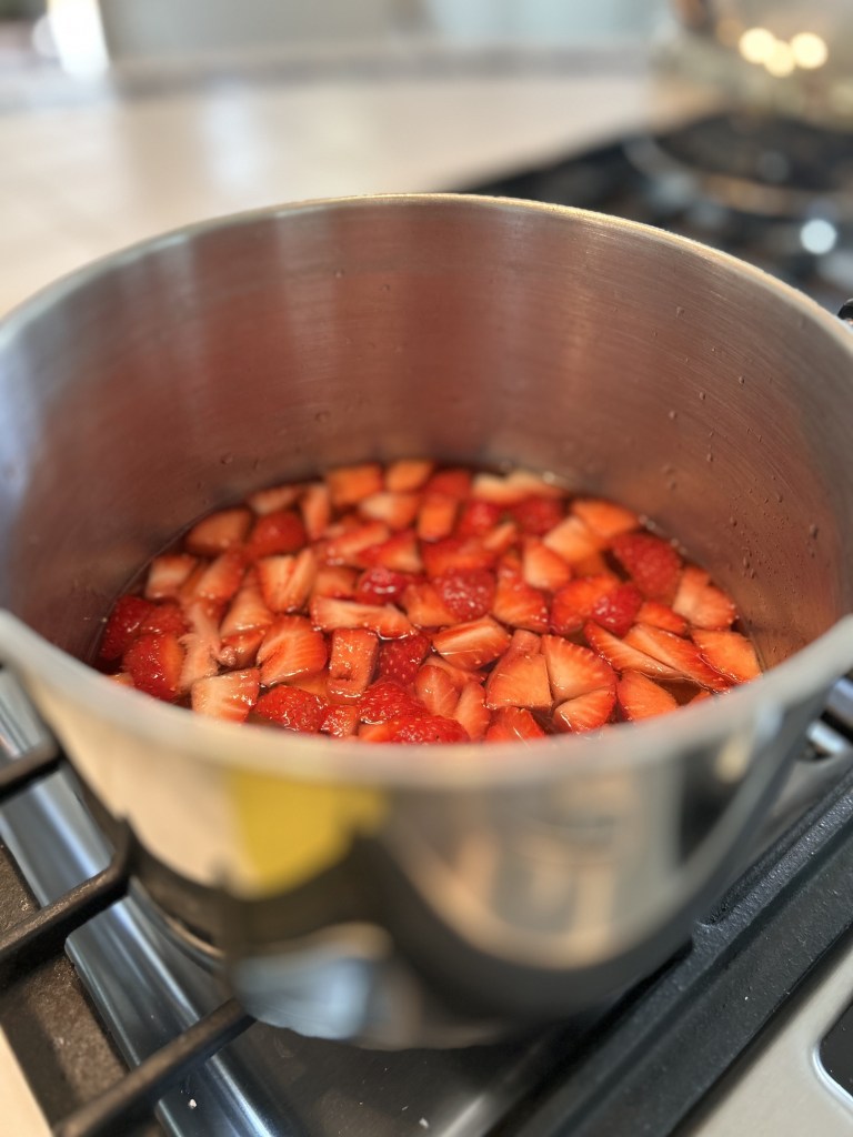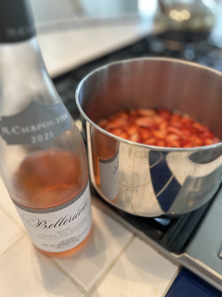 *Note: if you don’t have fresh strawberries, you can use frozen strawberries. Get a 2lb bag of frozen strawberries and blend well with a bottle of rosé and 1/2 cup agave syrup, maple syrup or honey. Pour the mixture into large ice cubes or a large freezer-safe container. Cover and freeze for 4 plus hours before serving. The sorbet can be made up to a week in advance.